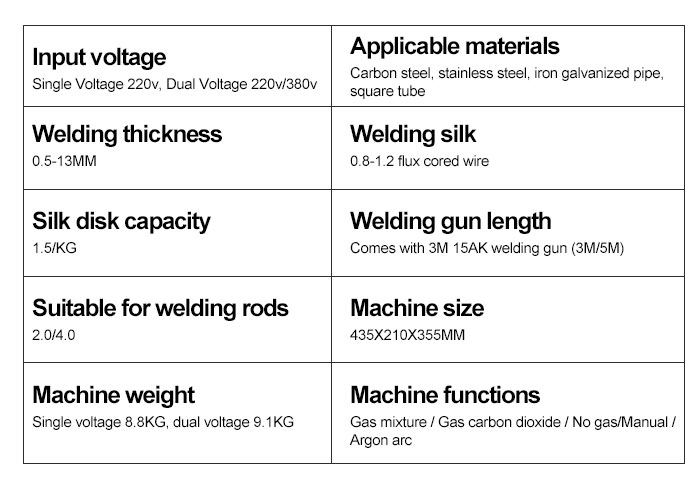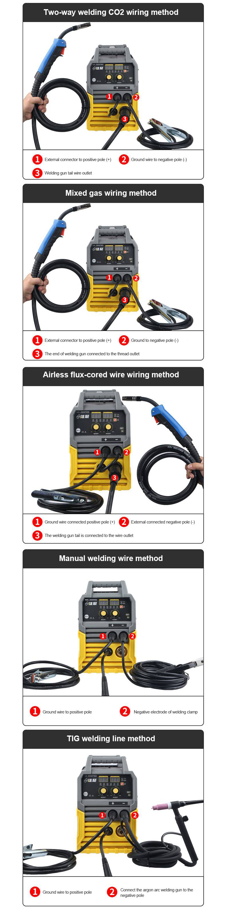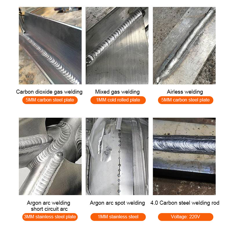 One machine can handle multiple materials, carbon dioxide gas welding, mixed gas welding, non gas welding, argon arc welding, short circuit arc starting, argon arc spot welding, 4.0 carbon steel welding rod