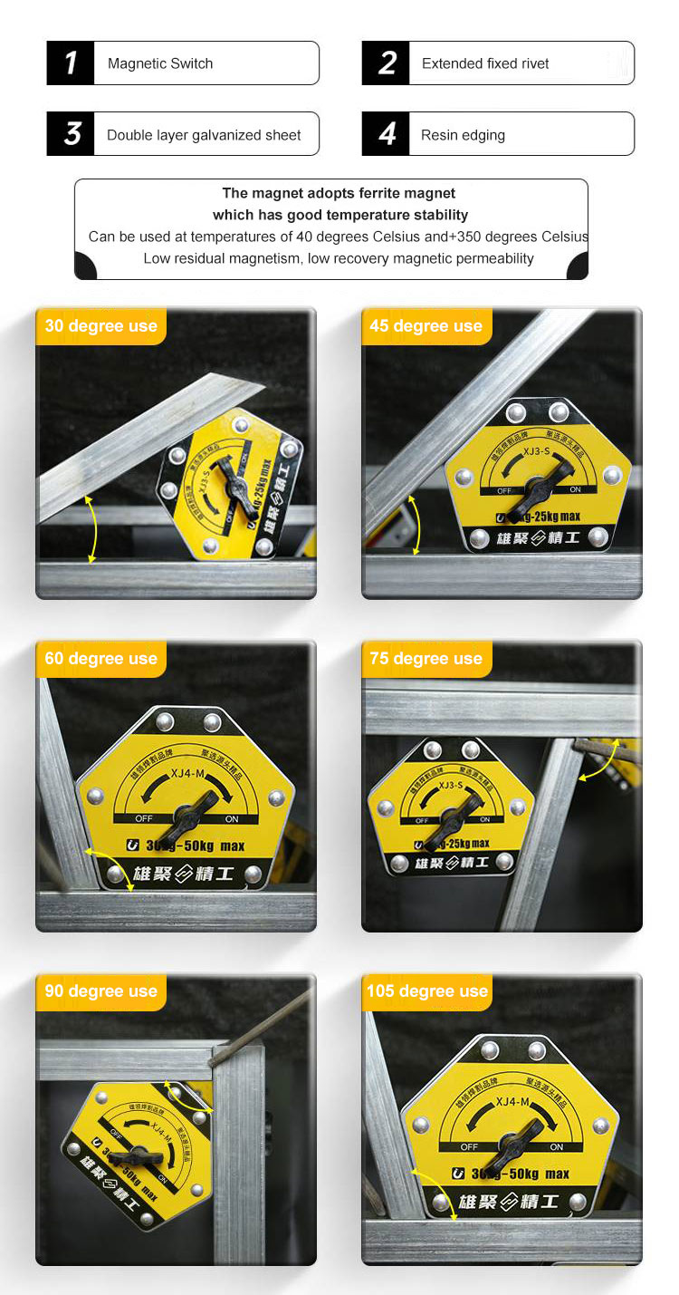 30 °/45 °/60 °/75 °/90 °/105 ° angle combination