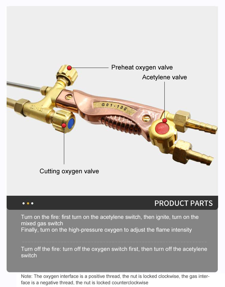 Straight head cutting/bend cutting This product defaults to gas propane cutting nozzle