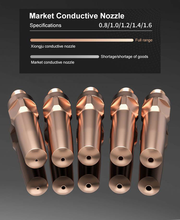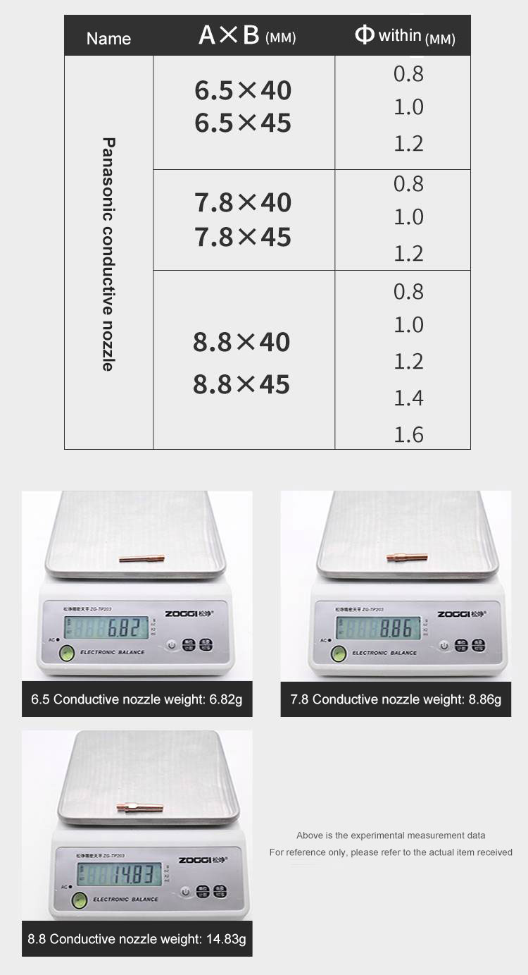 The conductive nozzle is actually about 0.2mm thicker than the welding wire